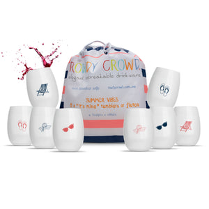 8 x “Rowdy Summer Vibes” printed wine tumblers. Every cup is printed with a different colour, symbol or both!