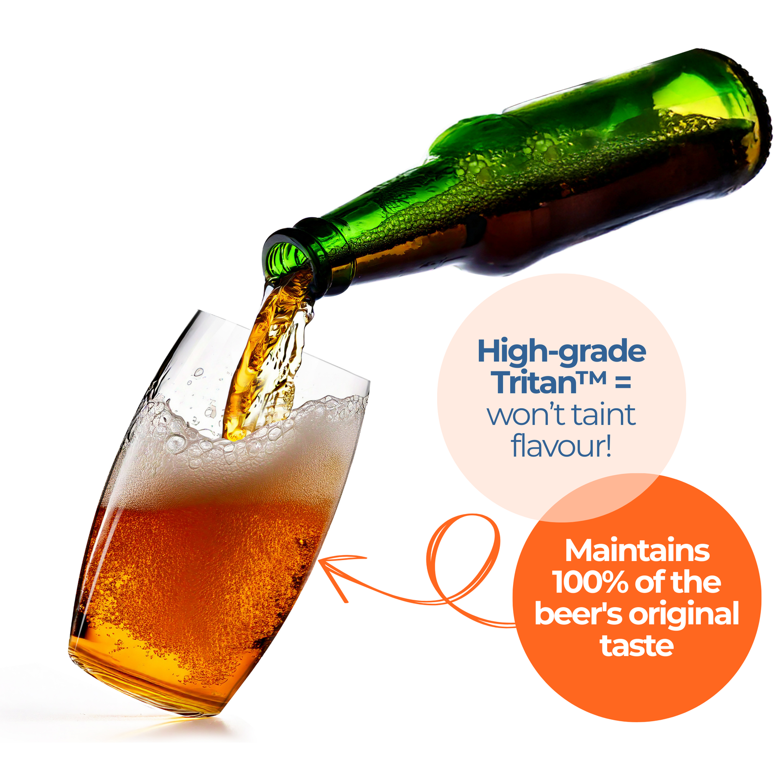 Tritan is also engineered to protect the true taste of your brew. It doesn’t leach chemicals or taint the flavour of beverages, meaning your beer keeps 100% of its original taste, no plastic aftertaste, no compromise. While other plastics can impart unwanted flavours, not Rowdies!