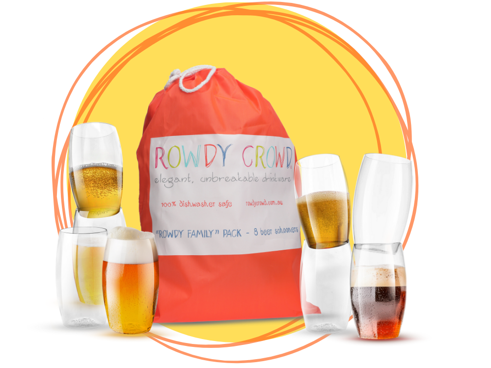 Pour with confidence using Rowdy Crowd’s unbreakable beer schooners. Made from premium Tritan™, they look like glass but won’t crack, cloud or shatter (even in the rowdiest settings). Lightweight, dishwasher safe, BPA free and built to last, they’re made for outdoor events, festivals, breweries and anywhere great beer is served.