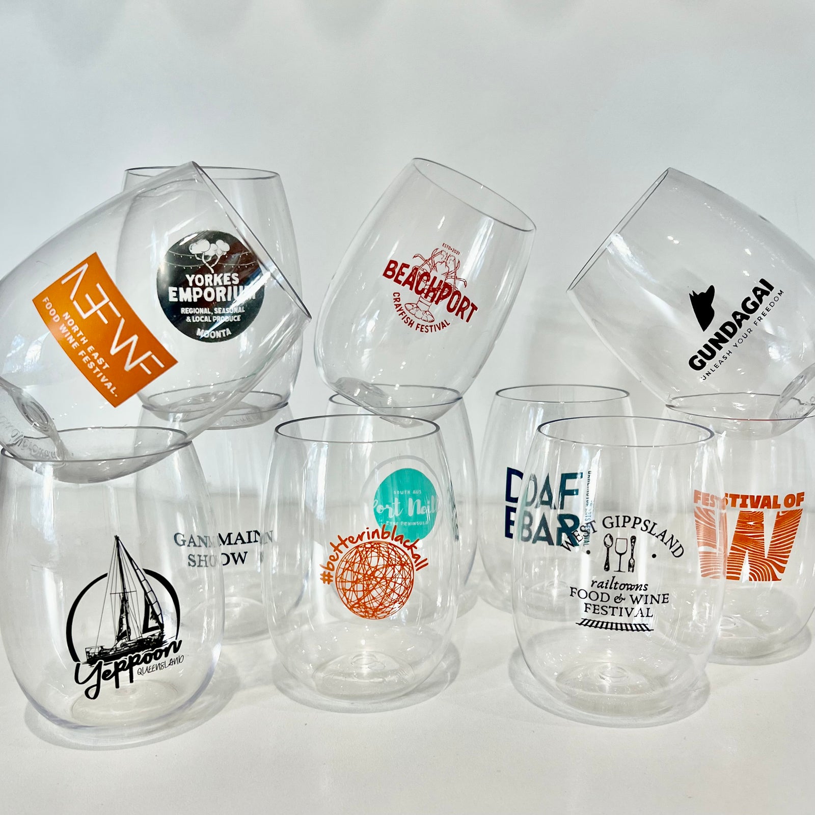 What more could you want when putting on a festival, event or just keeping your winery crowd happy? We can turn around custom branded wine tumblers in 3–10 days for orders up to 2,500. Got a bigger order? No worries, larger runs take a little longer but if you’ve got 10 weeks up your sleeve, you might be able to score our best value offshore printing option done at the time of manufacture.